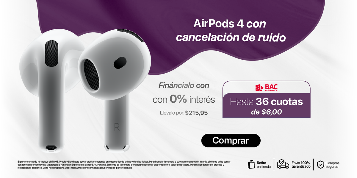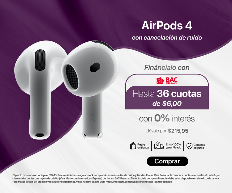 La cancelación activa de ruido en los AirPods Pro y AirPods Max permite bloquear sonidos externos para una experiencia auditiva inmersiva. También cuentan con el modo Transparencia, que permite escuchar el entorno sin necesidad de quitarse los audífonos, ideal para conversaciones o seguridad al aire libre.