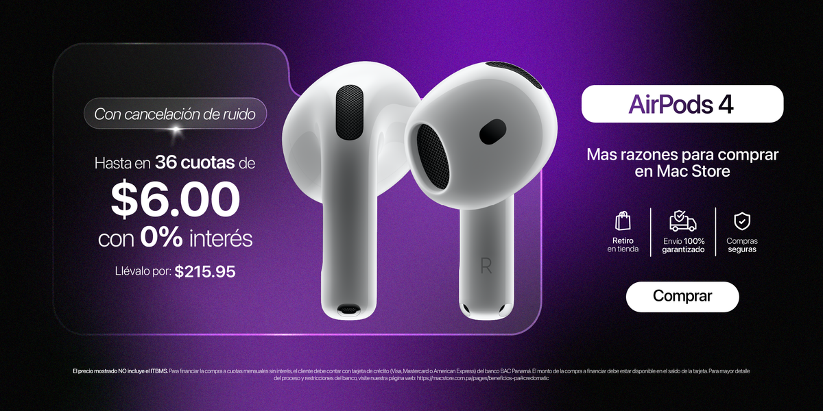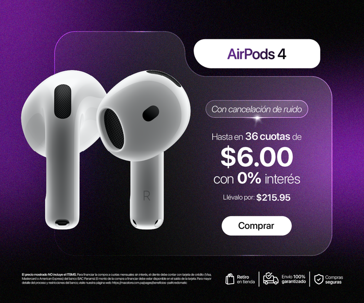 La cancelación activa de ruido en los AirPods Pro y AirPods Max permite bloquear sonidos externos para una experiencia auditiva inmersiva. También cuentan con el modo Transparencia, que permite escuchar el entorno sin necesidad de quitarse los audífonos, ideal para conversaciones o seguridad al aire libre.