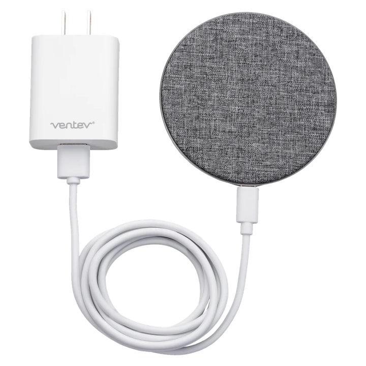 Este cargador rápido de última generación cuenta con carga de Apple 7.5W y Samsung 10W. El cargador inalámbrico universal + también es compatible con todos los dispositivos de carga inalámbricos Qi. Con una cubierta de tela flexible, el pad de carga + se destaca entre la multitud de plástico negro y combina con otros dispositivos enfocados en el hogar. Incluye cable de 5 pies A-C y cargador Qualcomm Quick Charge 3.0.