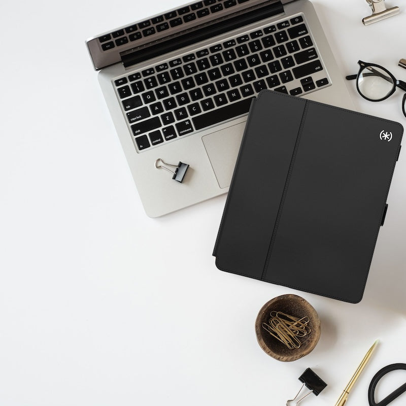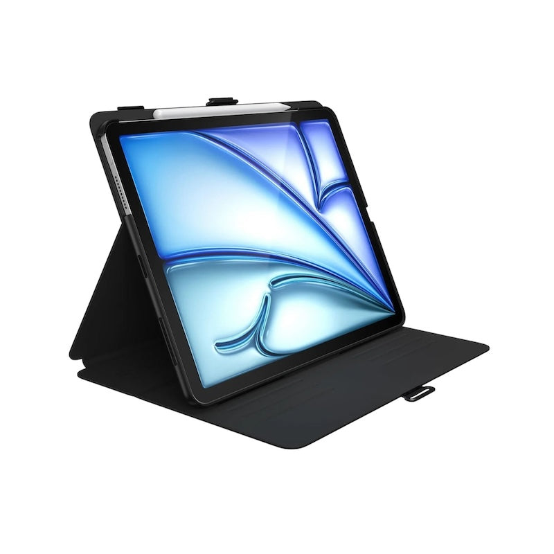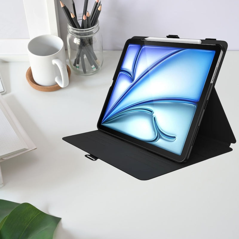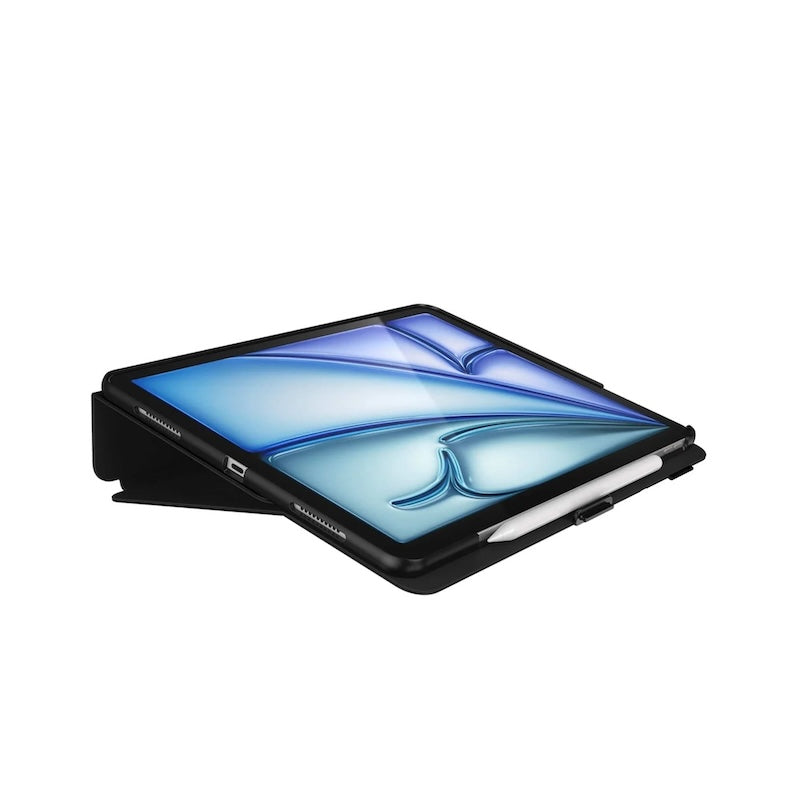 Un folio delgado y elegante para tableta de 13". La cubierta está diseñada con un protector magnético para la cámara que cubre la lente y se retrae fácilmente cuando necesitas tomar una fotografía. Con soporte integrado para lápiz digital.
