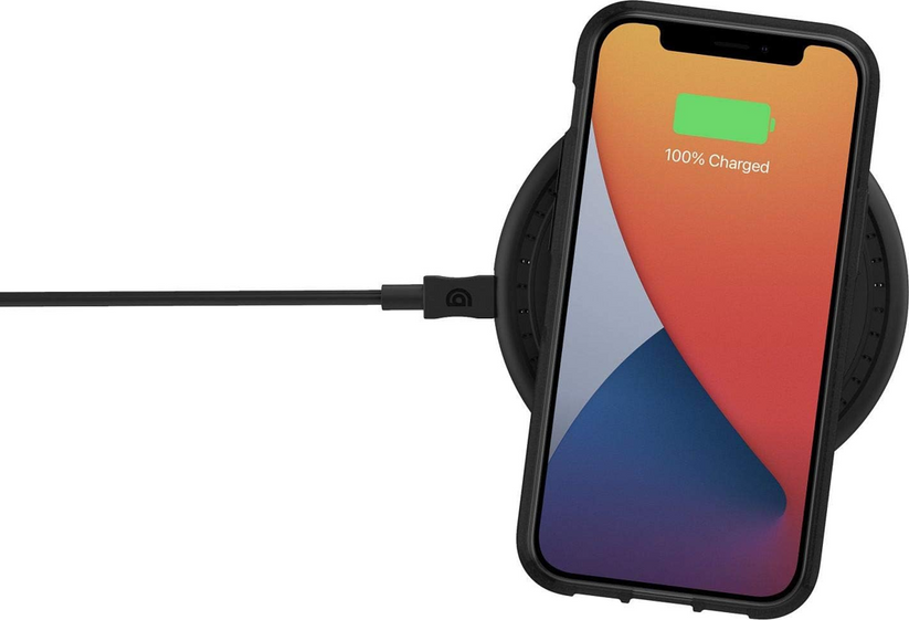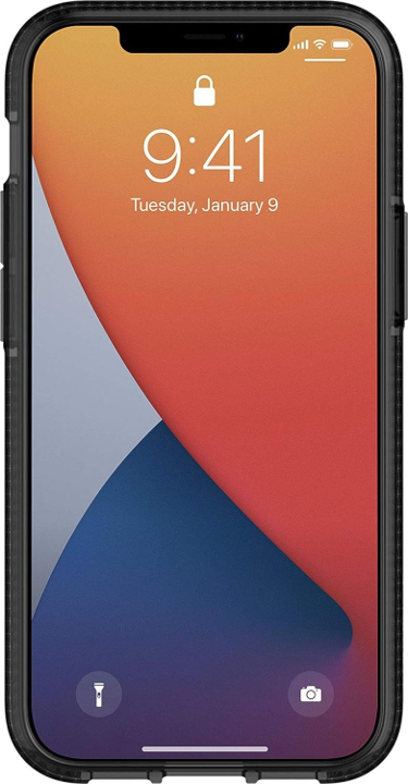 6 pies de protección contra caídas probada según los estándares militares (MIL-STD 810G). Tecnología de pared lateral amortiguadora de golpes: protección paramétrica. El bisel de borde elevado de altura extendida protege la pantalla. Funciona con cargador MagSafe y carga inalámbrica. Compatible con 5G.