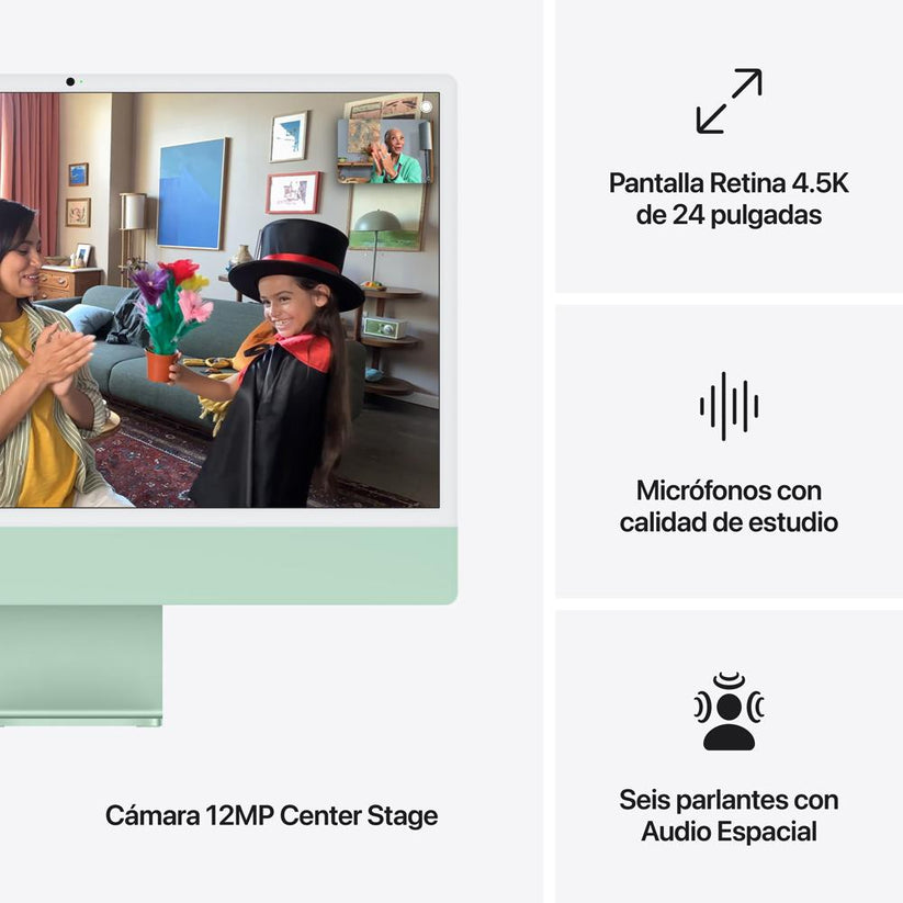 iMac. El computador de escritorio todo-en-uno mejor preparado. Diseñado para Apple Intelligence. Con los superpoderes del chip M4, puedes navegar y hacer multitasking en apps a toda velocidad. Con una espectacular pantalla Retina 4.5K de 24 pulgadas, un diseño inconfundible, cámaras avanzadas, micrófonos y parlantes, el iMac es perfecto para trabajar y jugar.